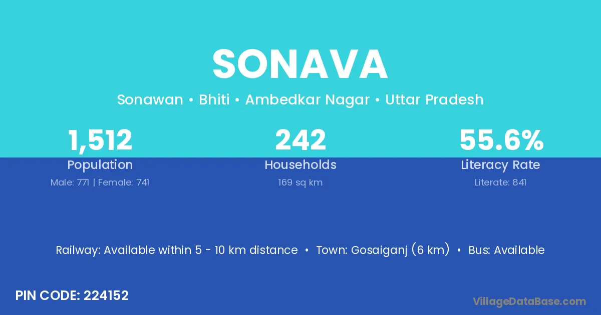 Gosaiganj (6 km) is the nearest town to Sonava village for major economic activities and is located approximately 6 km away.