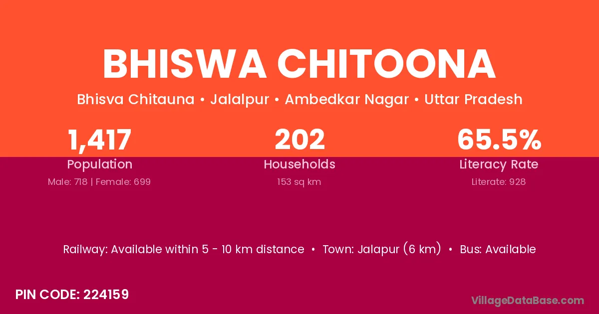 Bhiswa Chitoona village has a total population of 1,417 people, of which 718 are males and 699 are females.