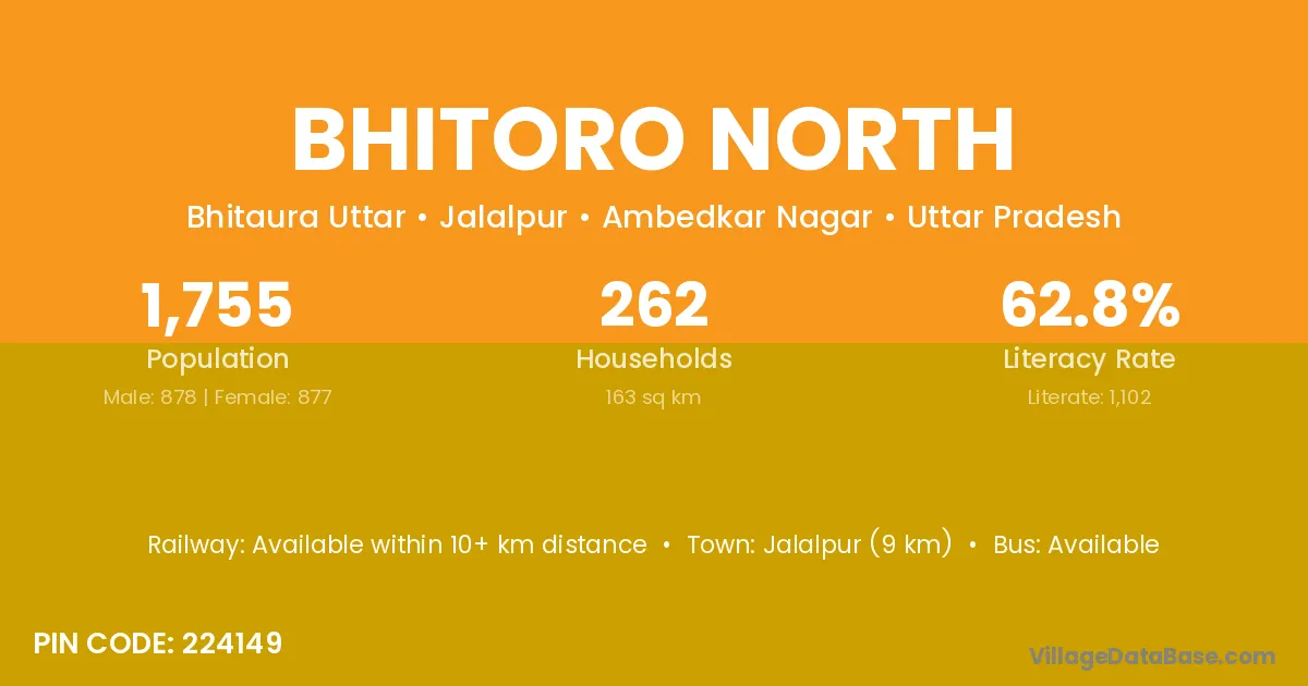 Bhitoro North village has a total population of 1,755 people, of which 878 are males and 877 are females.