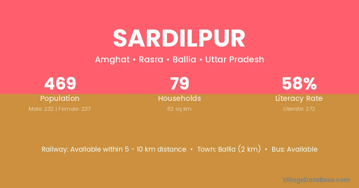 Jalalpur (12 km) is the nearest town to Sardilpur village for major economic activities and is located approximately 12 km away.