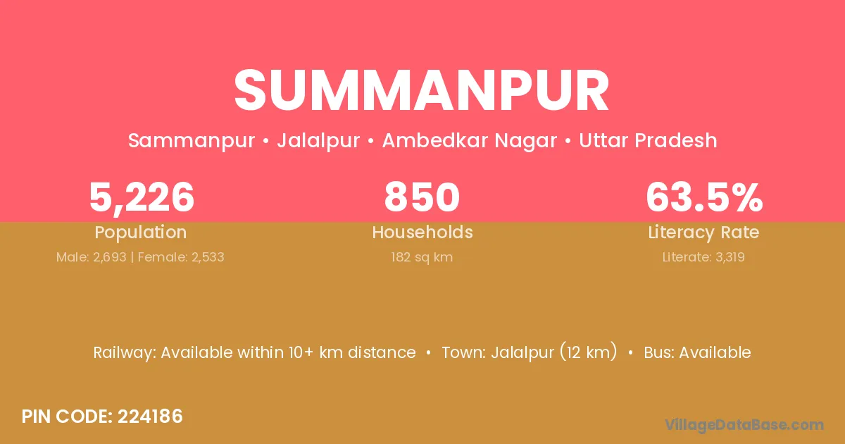 Jalalpur (12 km) is the nearest town to Summanpur village for major economic activities and is located approximately 12 km away.