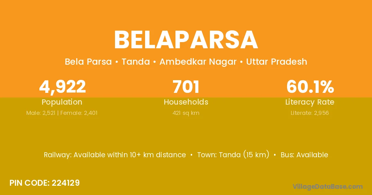 Tanda (15 km) is the nearest town to Belaparsa village for major economic activities and is located approximately 15 km away.