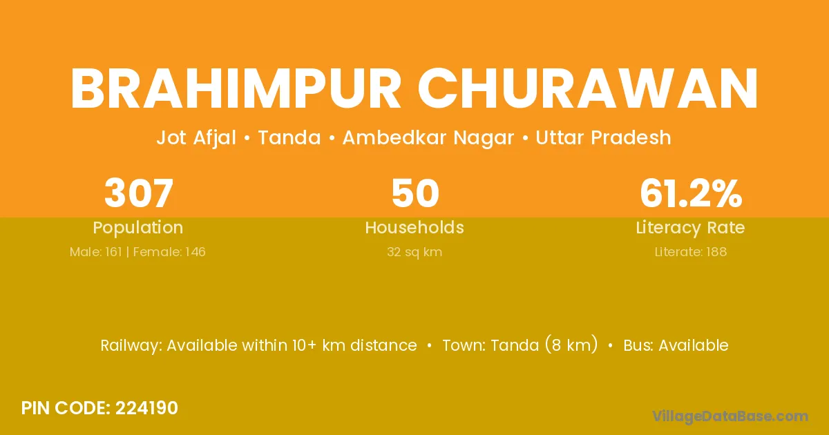 Tanda (8 km) is the nearest town to Brahimpur Churawan village for major economic activities and is located approximately 8 km away.