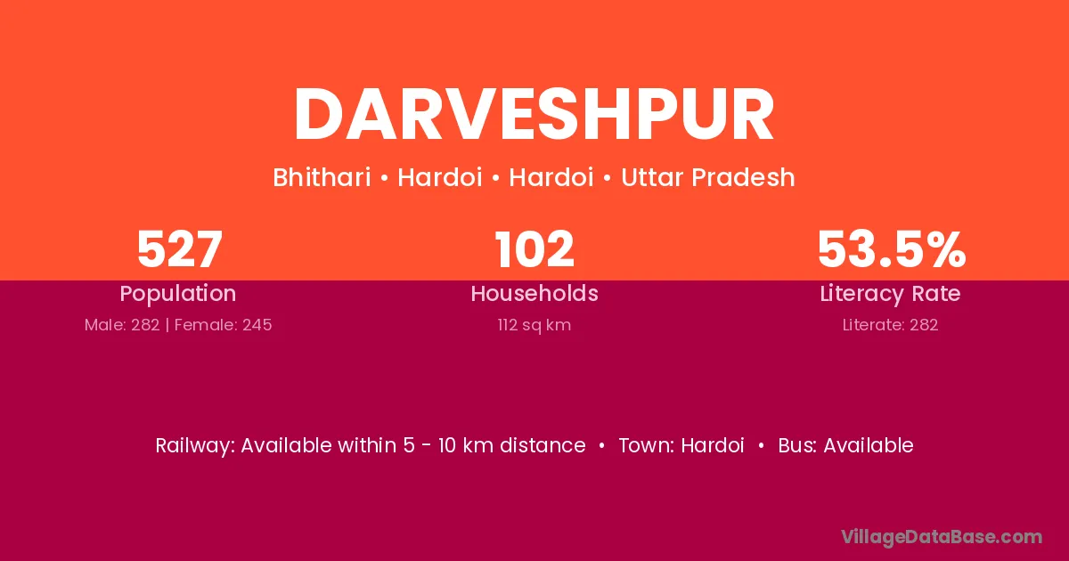 Tanda (6 km) is the nearest town to Darveshpur village for major economic activities and is located approximately 6 km away.