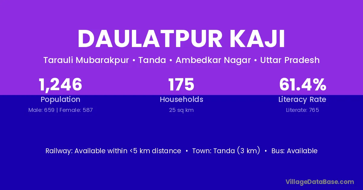 Tanda (3 km) is the nearest town to Daulatpur Kaji village for major economic activities and is located approximately 3 km away.
