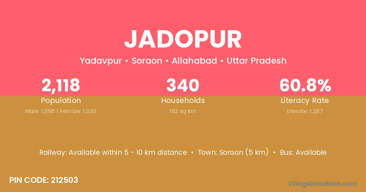 Iltifatganj (3 km) is the nearest town to Jadopur village for major economic activities and is located approximately 3 km away.