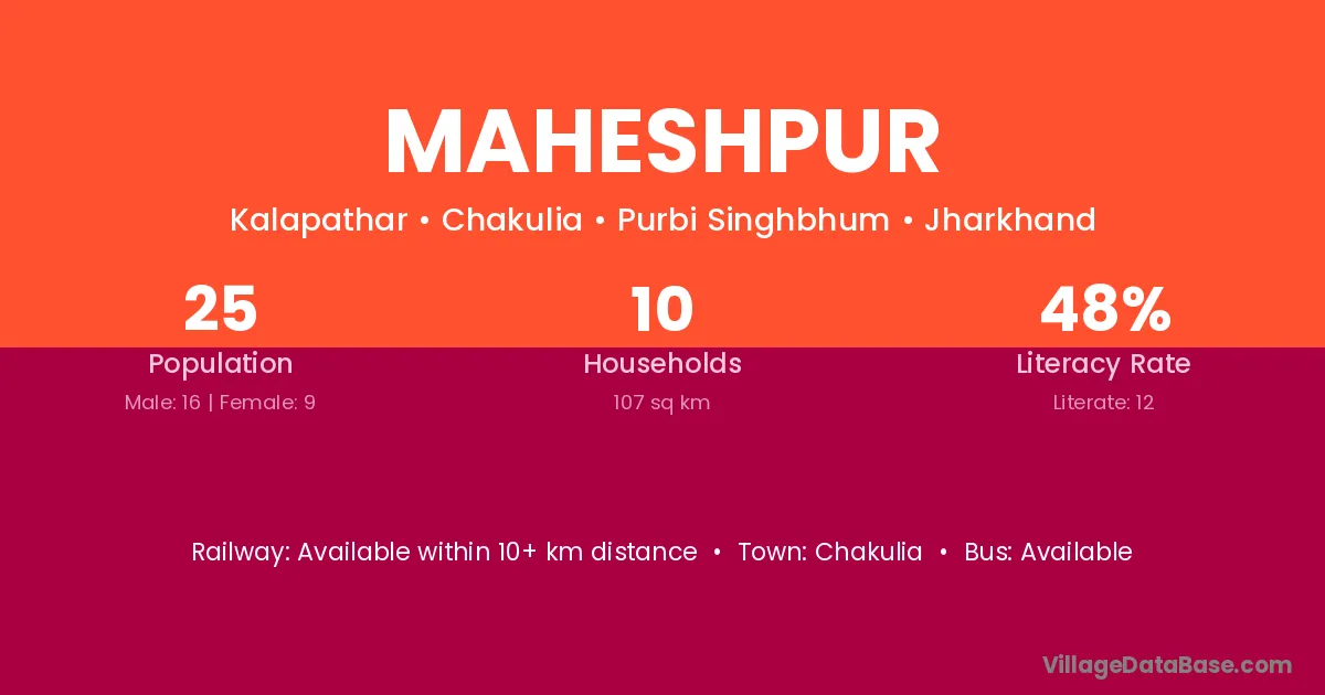 The literacy rate of Maheshpur village is 58.58%. Male literacy stands at 63.35% and female literacy at 53.67%.