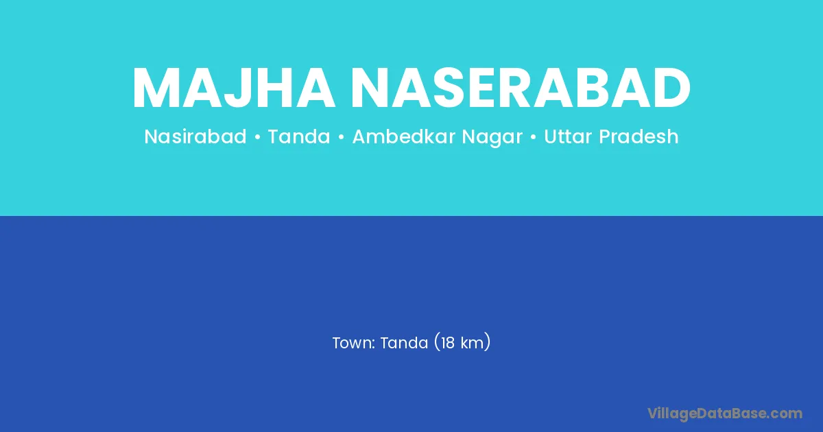 Tanda (18 km) is the nearest town to Majha Naserabad village for major economic activities and is located approximately 18 km away.