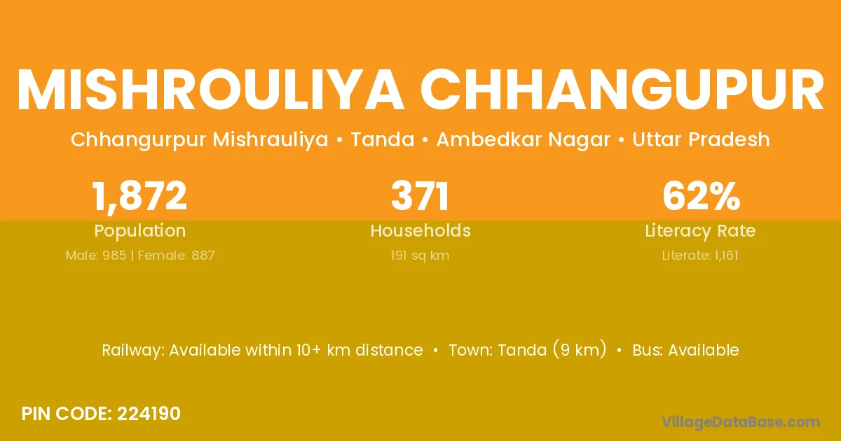 Tanda (9 km) is the nearest town to Mishrouliya Chhangupur village for major economic activities and is located approximately 9 km away.