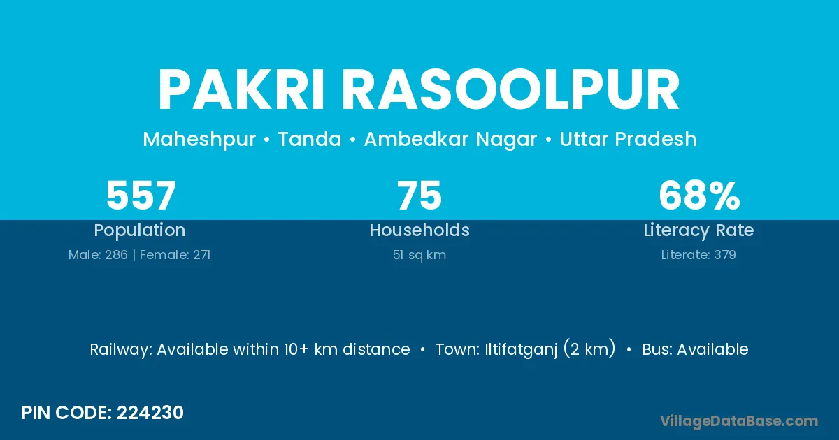 According to Census 2011 information, the village code of Pakri Rasoolpur village is 224230.