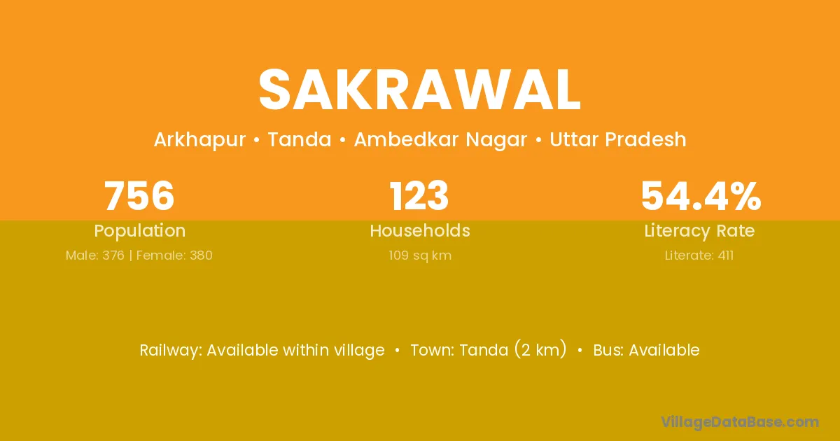 Tanda (2 km) is the nearest town to Sakrawal village for major economic activities and is located approximately 2 km away.