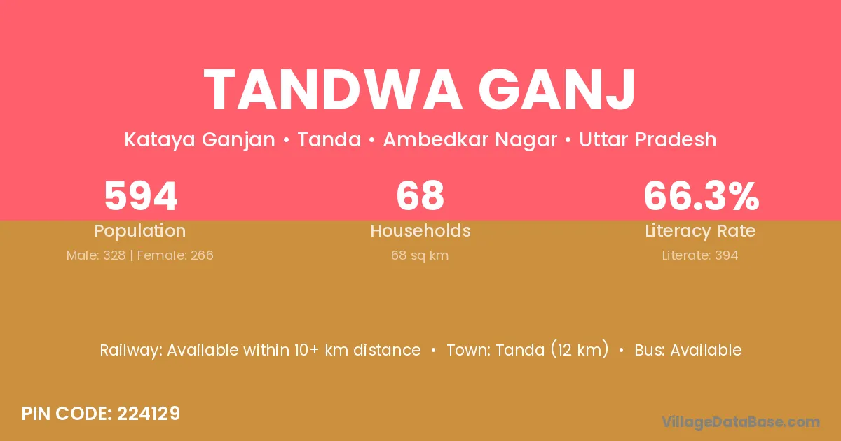 Tandwa Ganj village has a total population of 594 people, of which 328 are males and 266 are females.