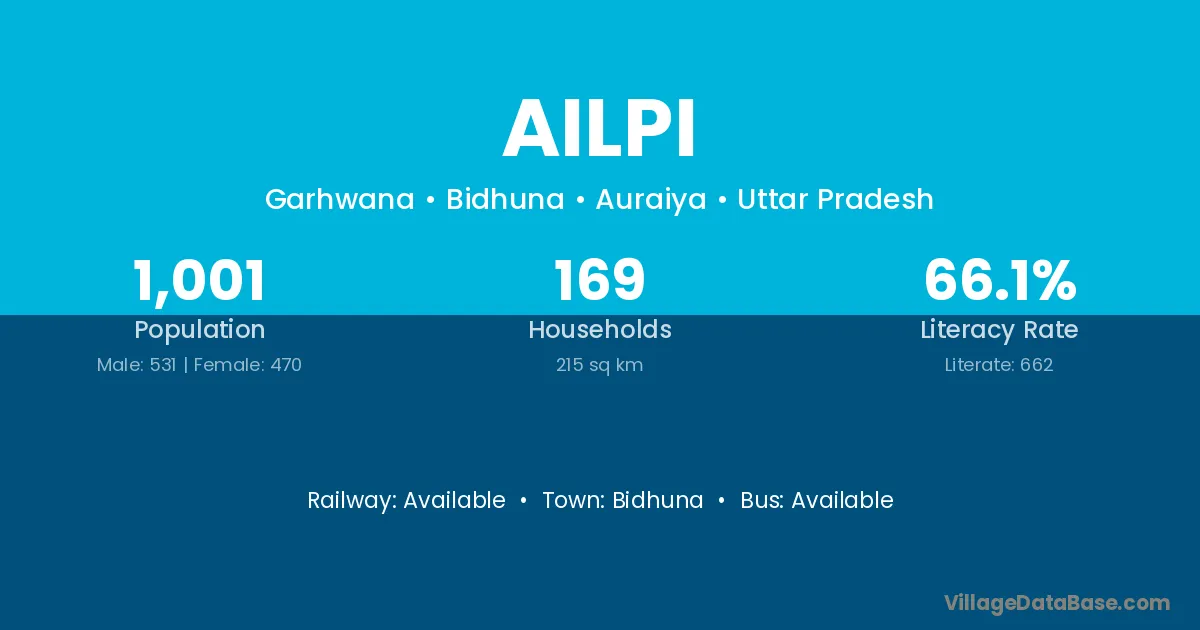 Bidhuna is the nearest town to Ailpi village for major economic activities