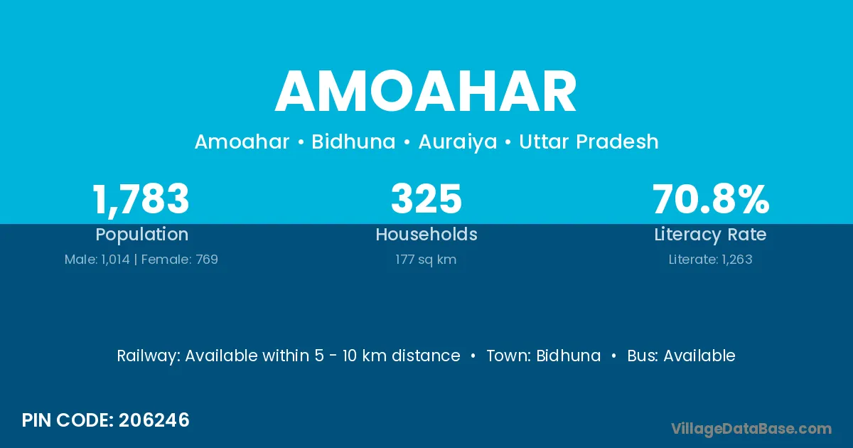 Bidhuna is the nearest town to Amoahar village for major economic activities