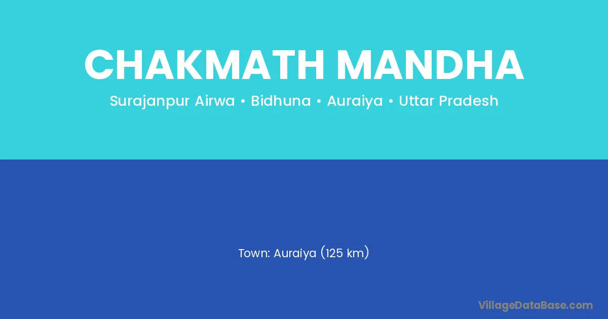 Auraiya (125 km) is the nearest town to Chakmath Mandha village for major economic activities and is located approximately 125 km away.