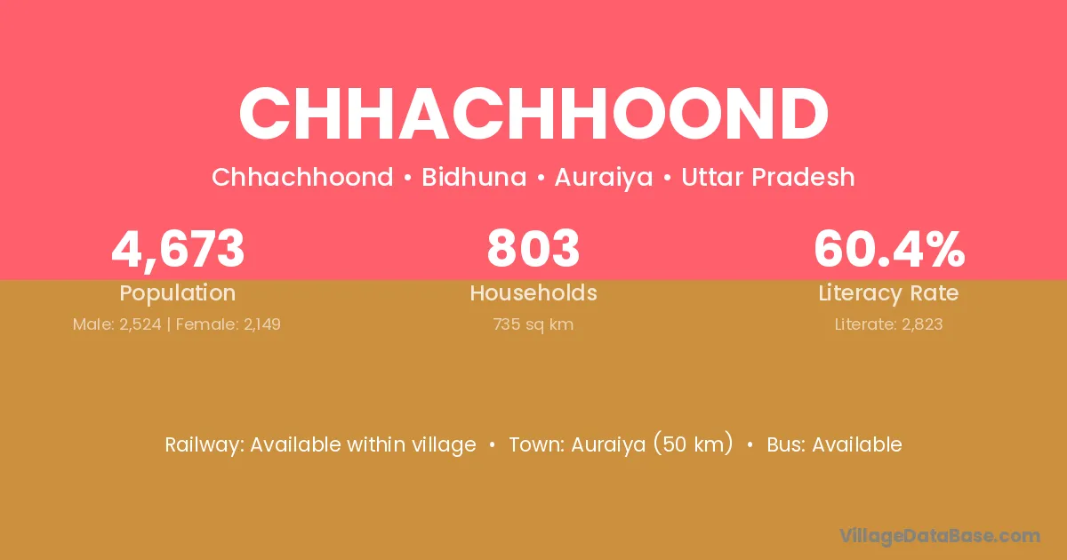Auraiya (50 km) is the nearest town to Chhachhoond village for major economic activities and is located approximately 50 km away.