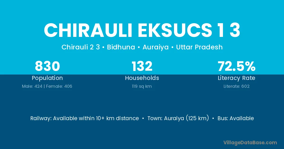 Chirauli Eksucs 1 3 village has a total population of 830 people, of which 424 are males and 406 are females.