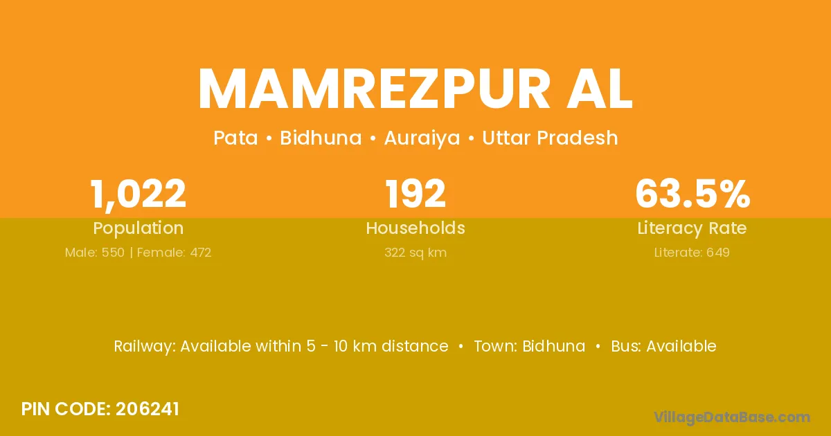According to Census 2011 information, the village code of Mamrezpur Al village is 206241.