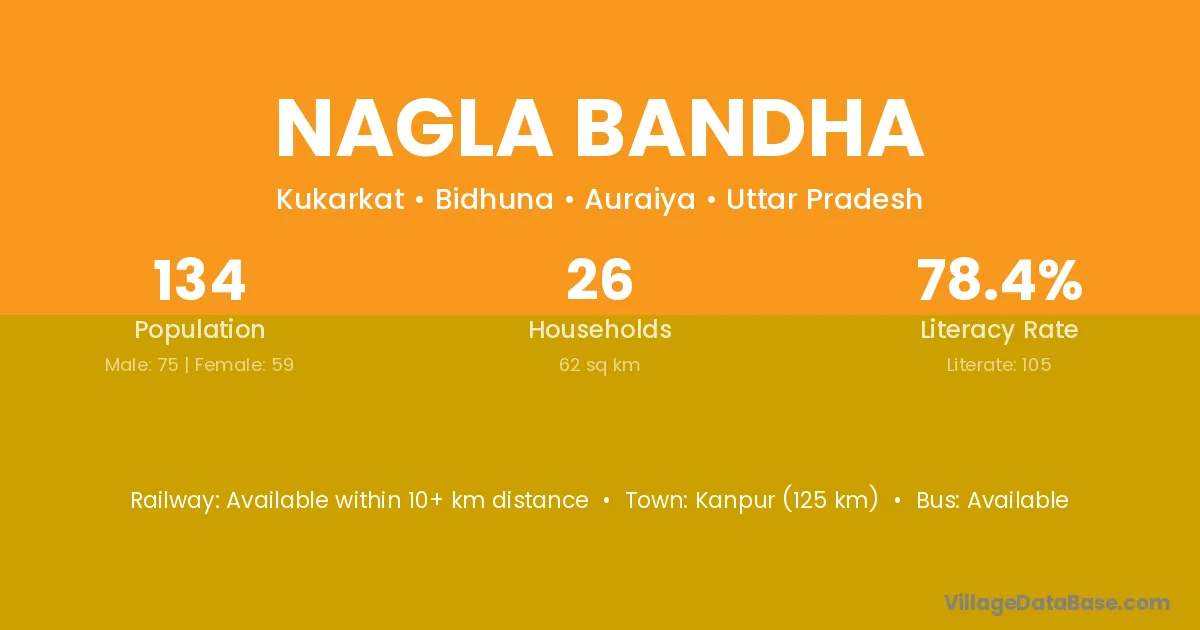 Kanpur (125 km) is the nearest town to Nagla Bandha village for major economic activities and is located approximately 125 km away.