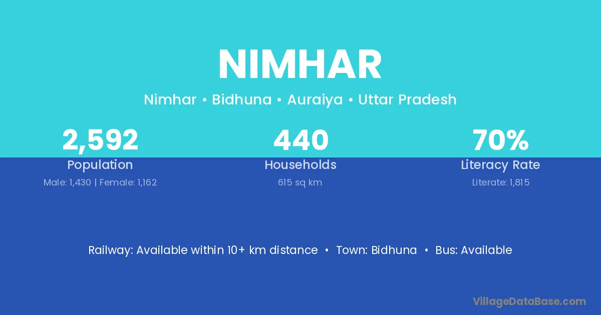 Bidhuna is the nearest town to Nimhar village for major economic activities