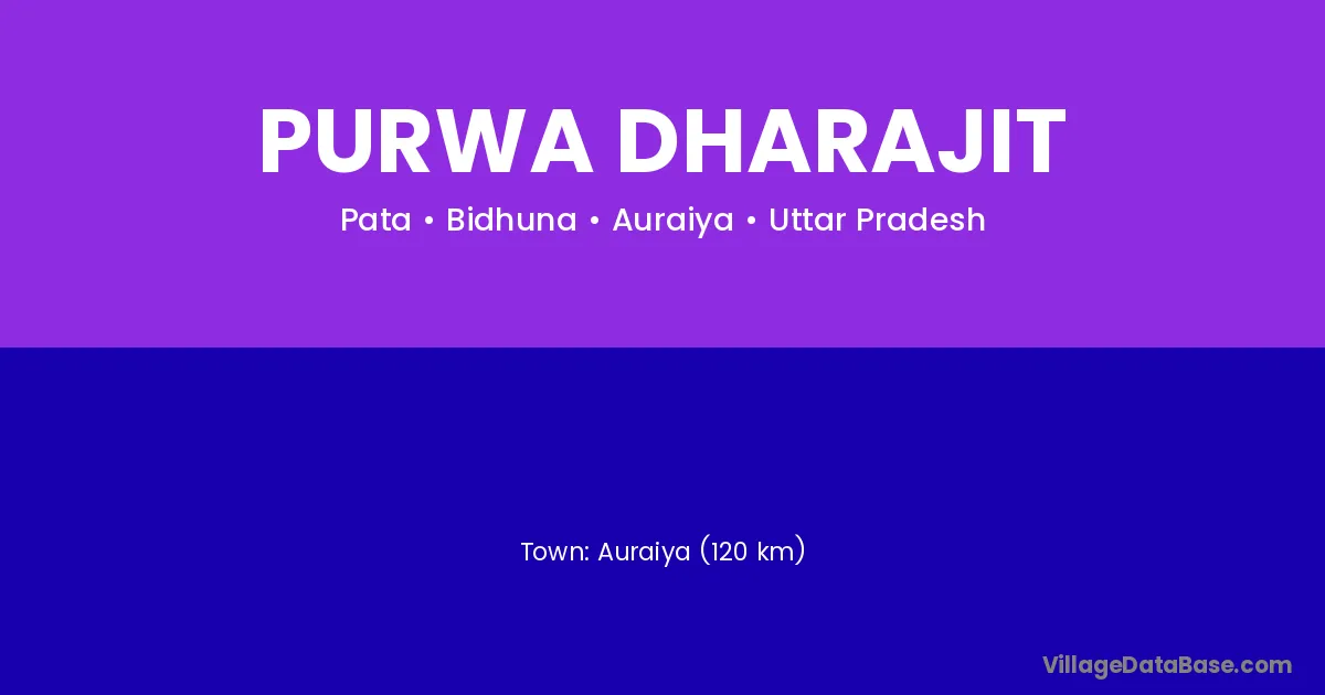 Auraiya (120 km) is the nearest town to Purwa Dharajit village for major economic activities and is located approximately 120 km away.