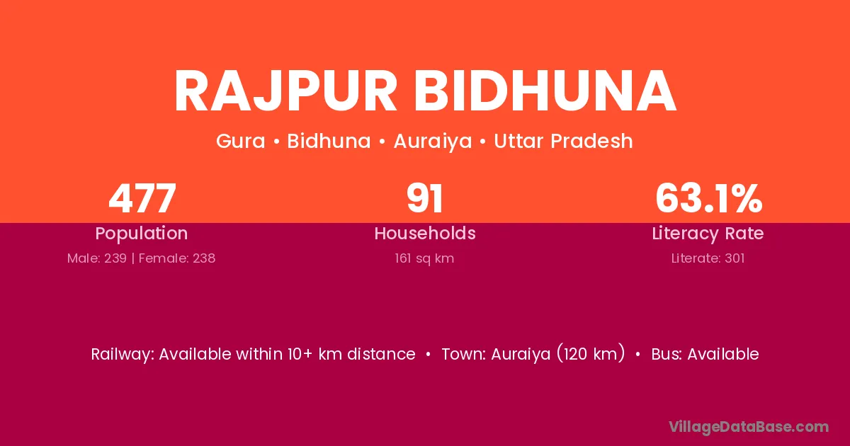 Rajpur Bidhuna village has a total population of 477 people, of which 239 are males and 238 are females.