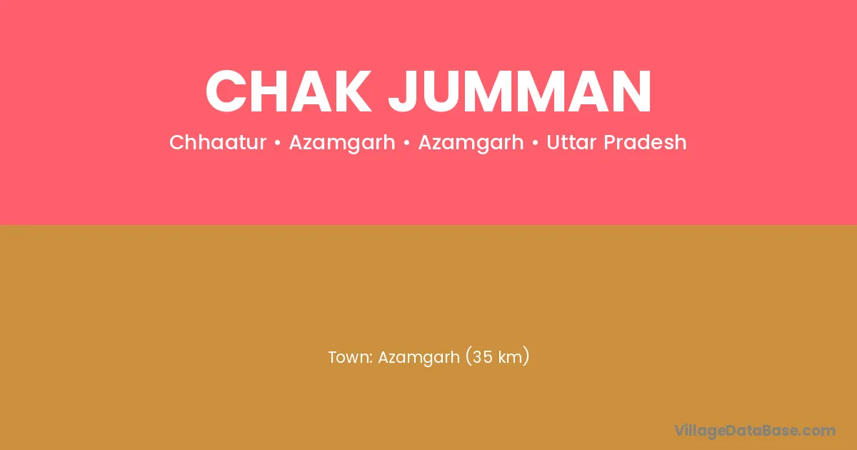 Azamgarh (35 km) is the nearest town to Chak Jumman village for major economic activities and is located approximately 35 km away.
