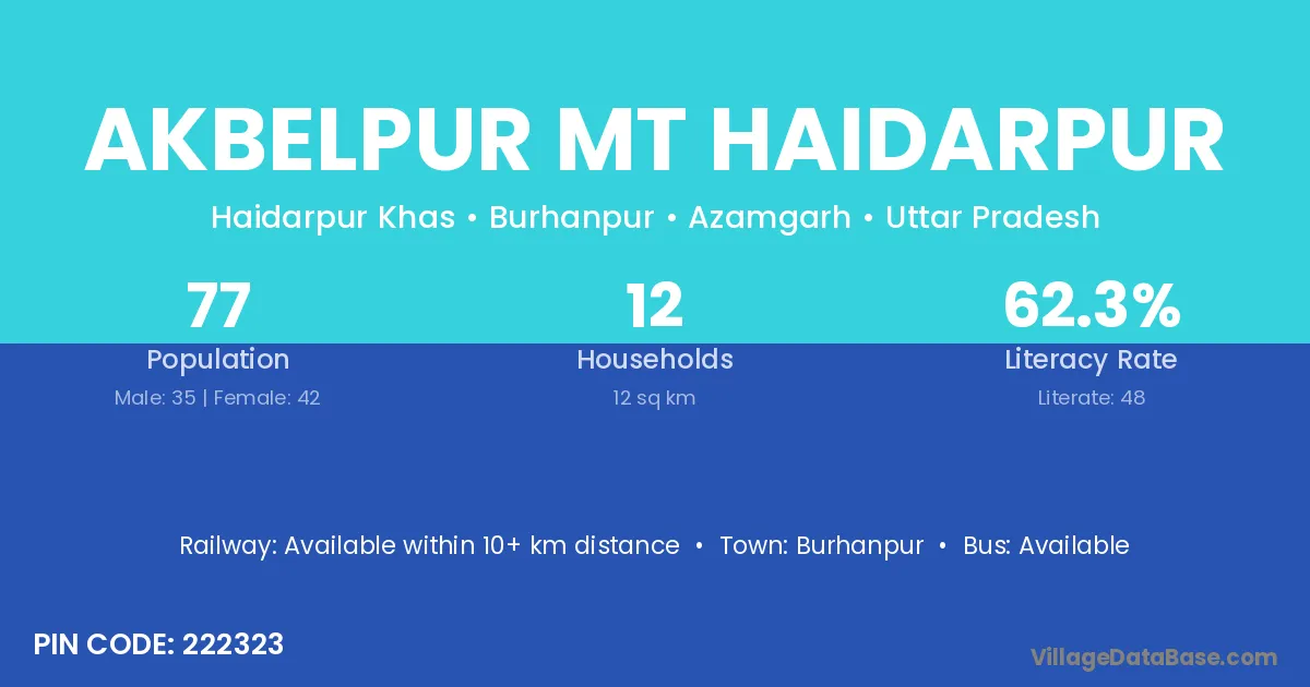 Burhanpur is the nearest town to Akbelpur Mt Haidarpur village for major economic activities