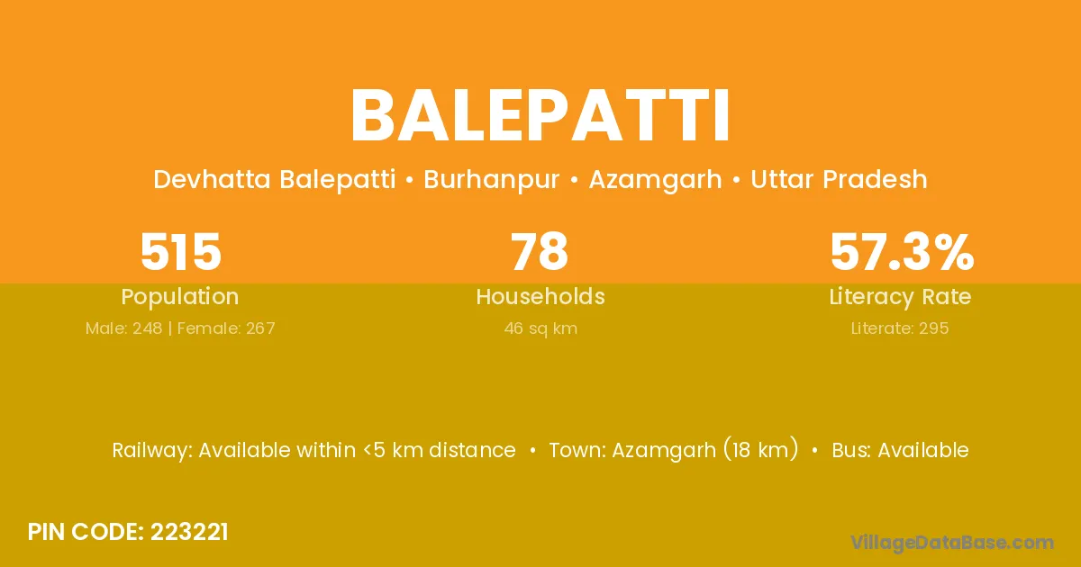 Azamgarh (18 km) is the nearest town to Balepatti village for major economic activities and is located approximately 18 km away.