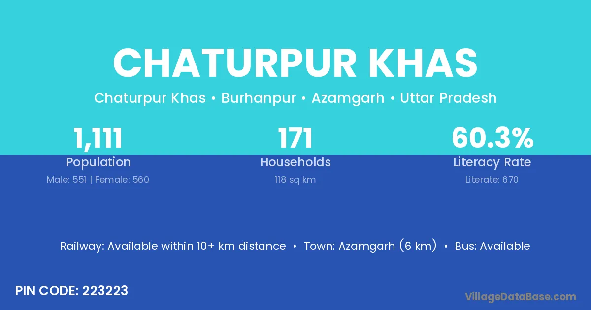 Azamgarh (6 km) is the nearest town to Chaturpur Khas village for major economic activities and is located approximately 6 km away.