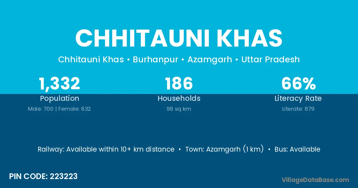 Azamgarh (1 km) is the nearest town to Chhitauni Khas village for major economic activities and is located approximately 1 km away.