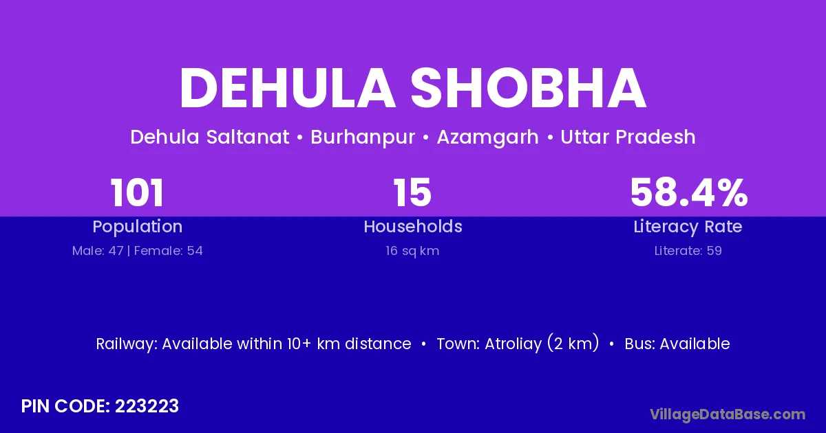 According to Census 2011 information, the village code of Dehula Shobha village is 223223.