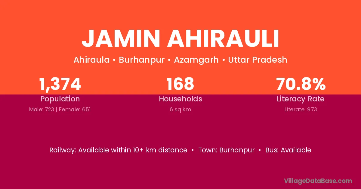 Burhanpur is the nearest town to Jamin Ahirauli village for major economic activities