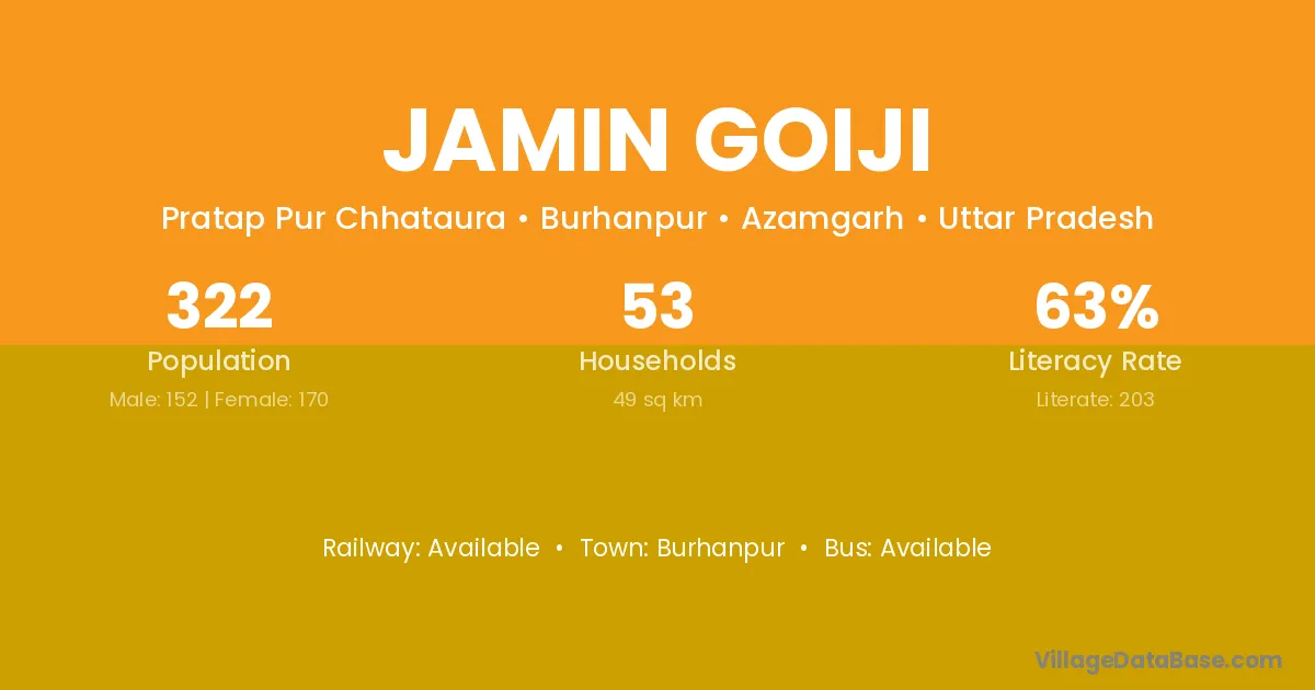 Jamin Goiji village is located in the Burhanpur Tehsil of the Azamgarh district in Uttar Pradesh .