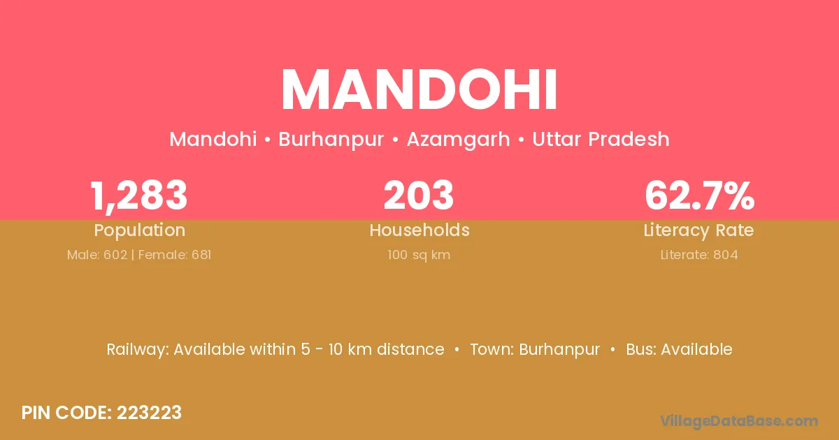Mandohi village is located in the Burhanpur Tehsil of the Azamgarh district in Uttar Pradesh .