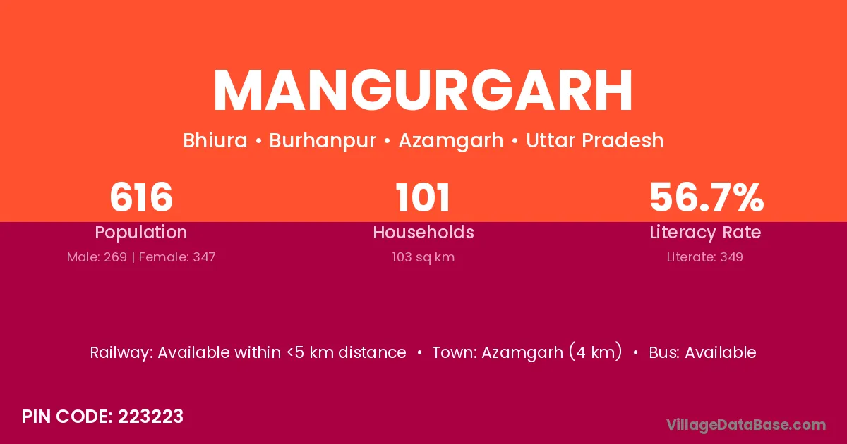 Azamgarh (4 km) is the nearest town to Mangurgarh village for major economic activities and is located approximately 4 km away.