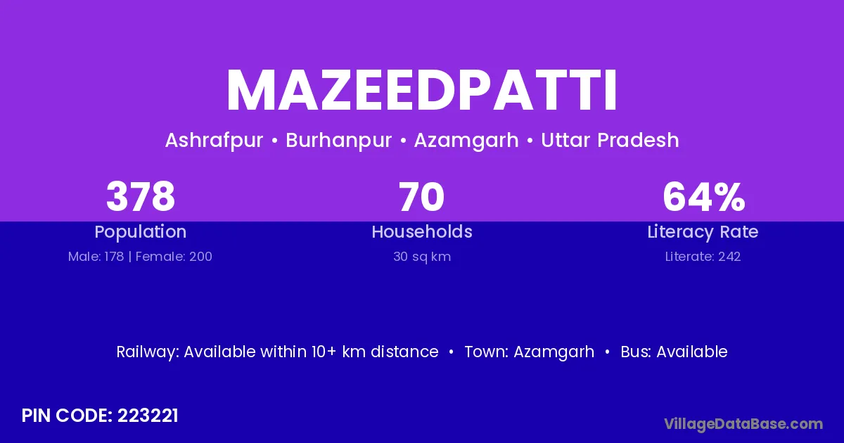 Azamgarh is the nearest town to Mazeedpatti village for major economic activities