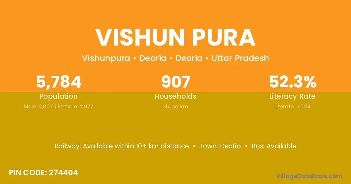 The literacy rate of Vishun Pura village is 66.48%. Male literacy stands at 75.26% and female literacy at 56.47%.
