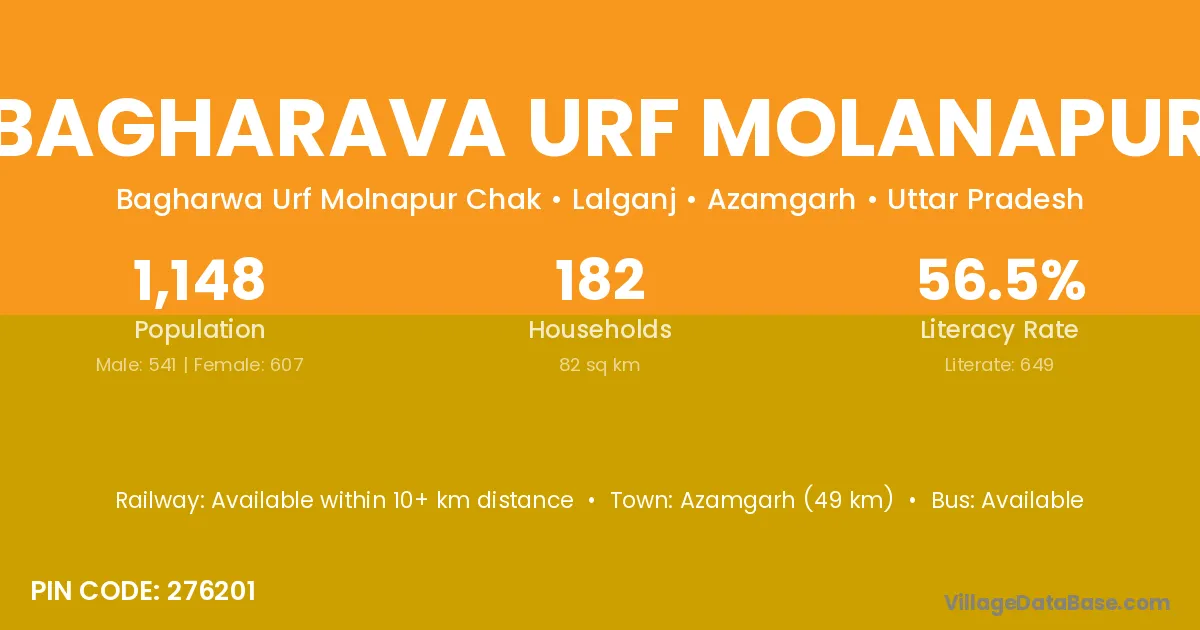 Azamgarh (49 km) is the nearest town to Bagharava Urf Molanapur village for major economic activities and is located approximately 49 km away.