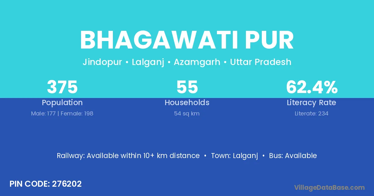 Bhagawati Pur village has a total population of 375 people, of which 177 are males and 198 are females.