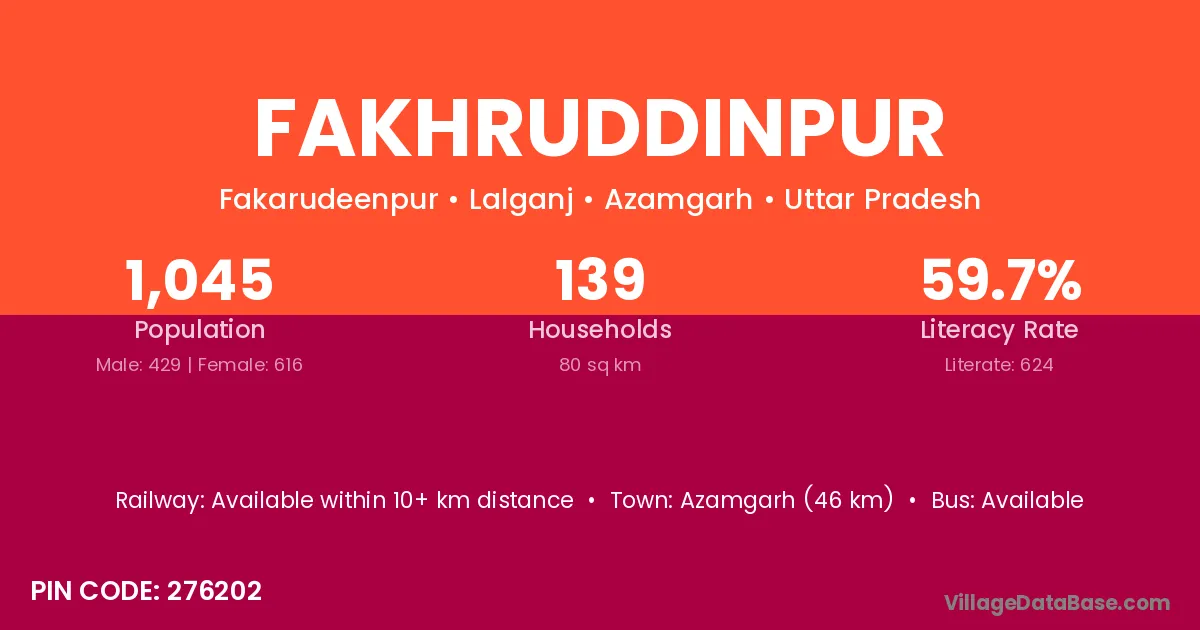 Azamgarh (46 km) is the nearest town to Fakhruddinpur village for major economic activities and is located approximately 46 km away.