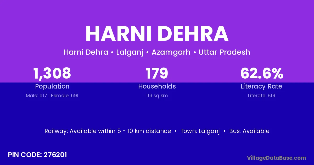 Lalganj is the nearest town to Harni Dehra village for major economic activities