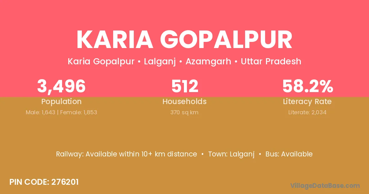 According to Census 2011 information, the village code of Karia Gopalpur village is 276201.