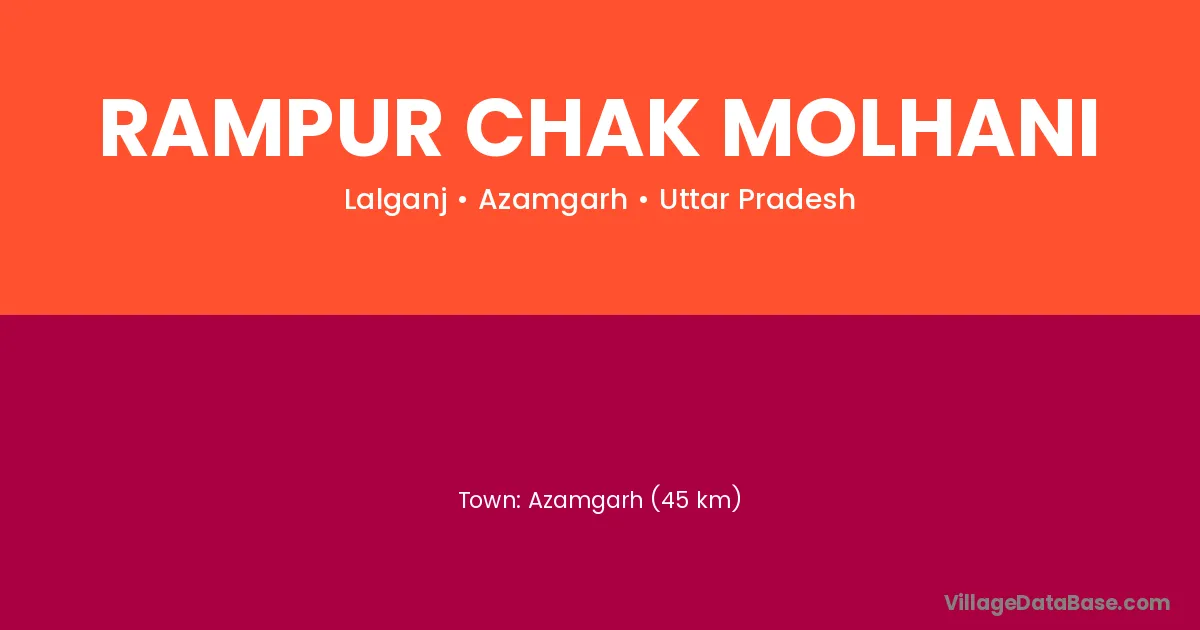 Azamgarh (45 km) is the nearest town to Rampur Chak Molhani village for major economic activities and is located approximately 45 km away.