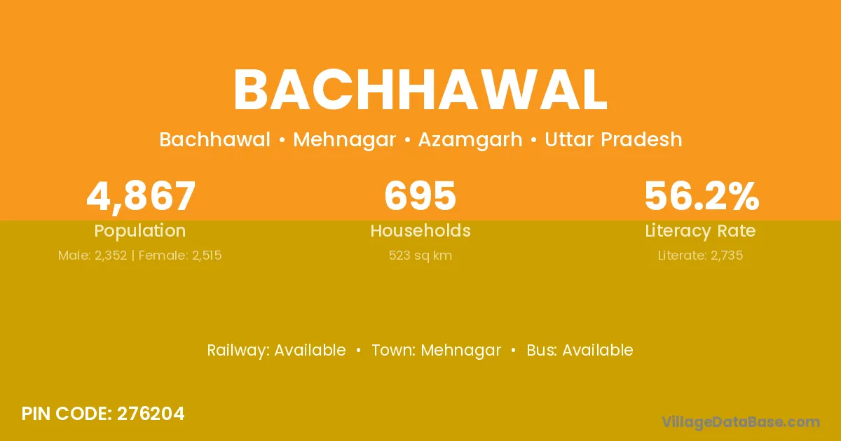 According to Census 2011 information, the village code of Bachhawal village is 276204.