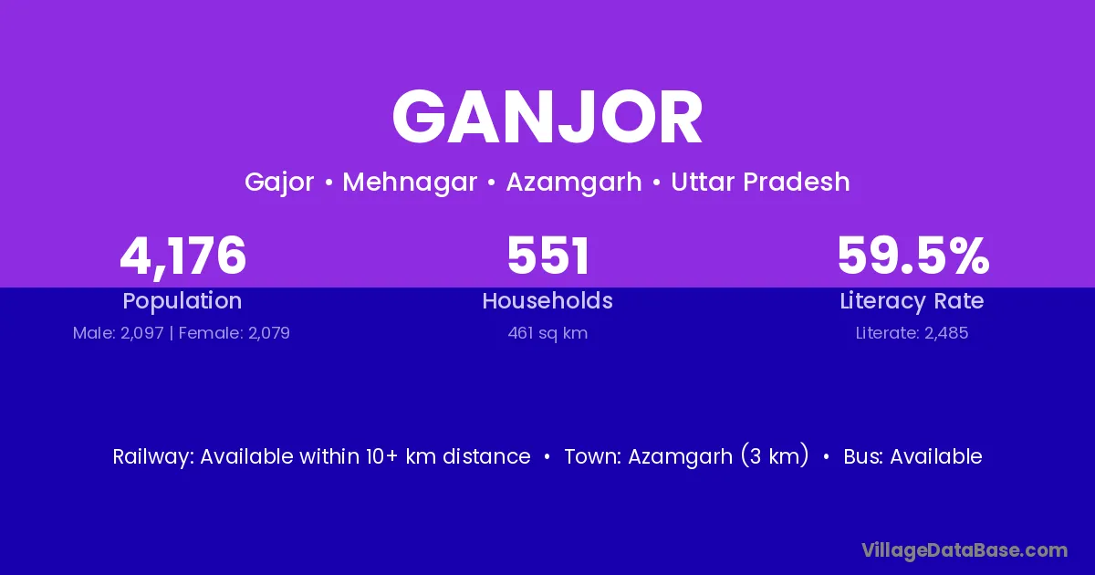 Azamgarh (3 km) is the nearest town to Ganjor village for major economic activities and is located approximately 3 km away.
