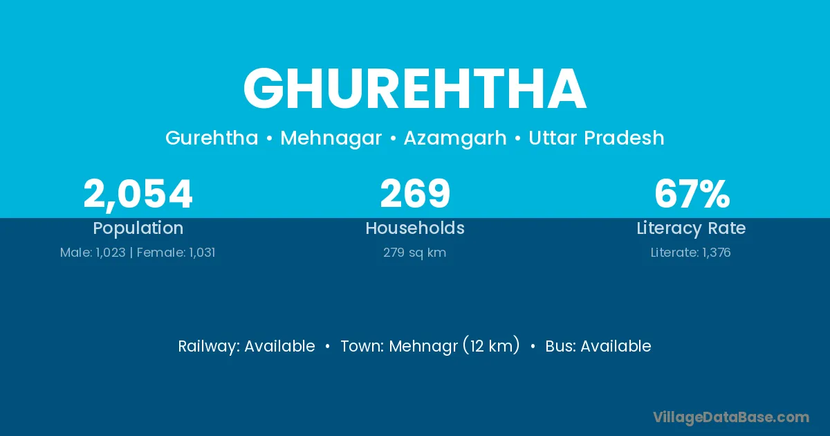 Ghurehtha village has a total population of 2,054 people, of which 1,023 are males and 1,031 are females.