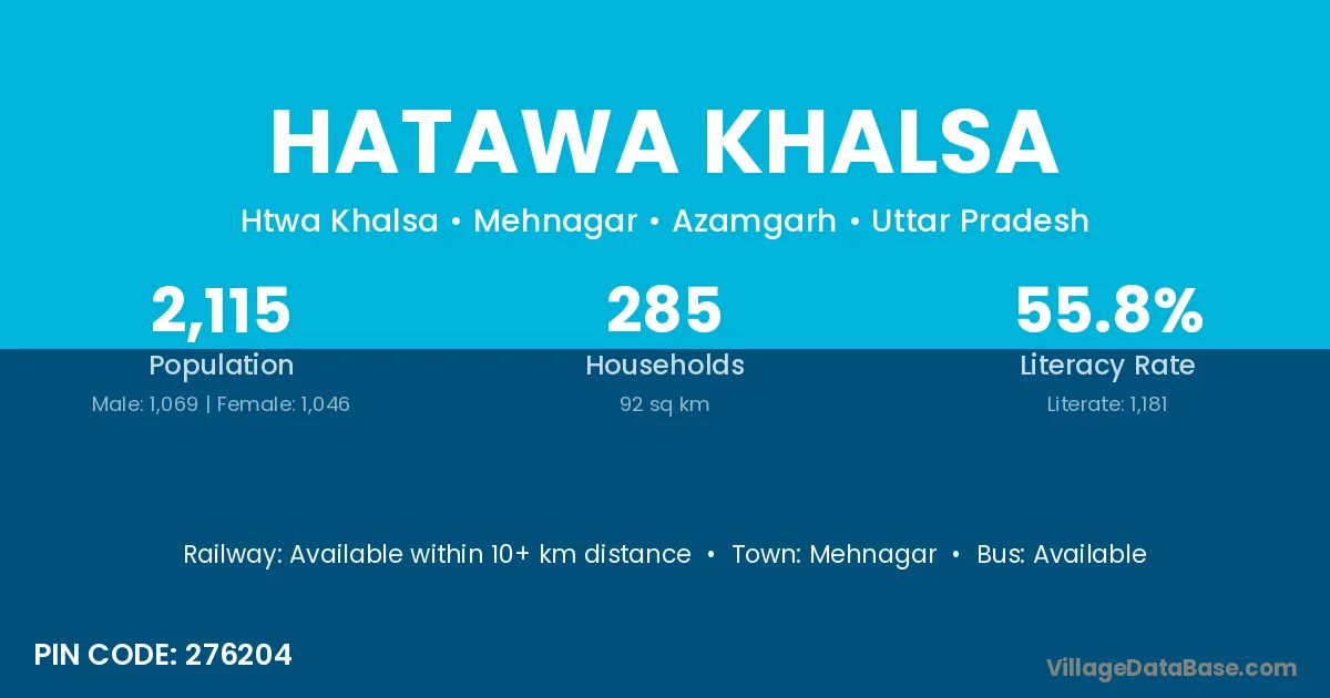 Mehnagar is the nearest town to Hatawa Khalsa village for major economic activities
