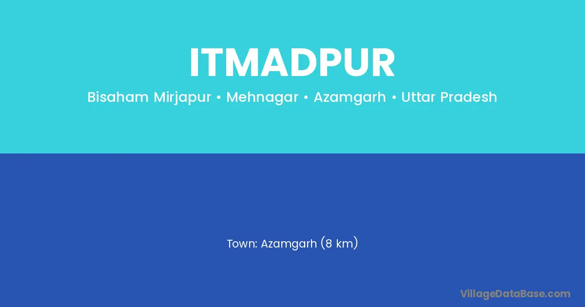 Azamgarh (8 km) is the nearest town to Itmadpur village for major economic activities and is located approximately 8 km away.