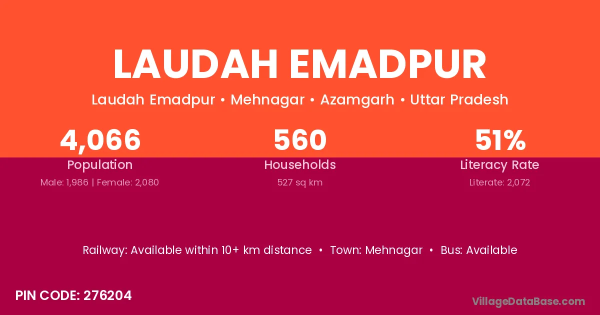 According to Census 2011 information, the village code of Laudah Emadpur village is 276204.